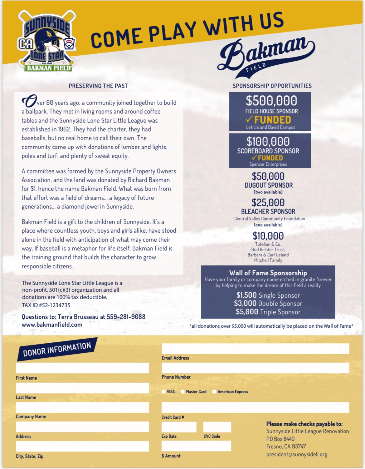 Since the 1960's, Sunnyside Lone Star Little League exists to